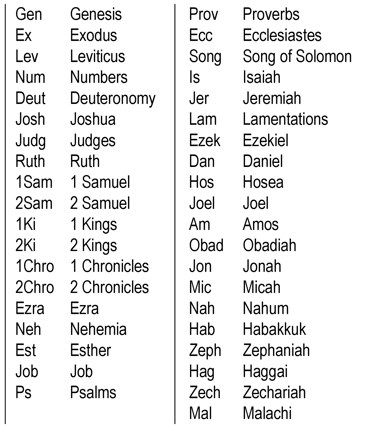 - Letter combinations after Bible verse declarations are abbreviations for Bible versions. See above ‘Bible Versions and their Abbreviations.’