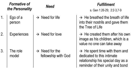 When God created men, He already at that time laid the foundation for the fulfillment of their deepest human needs, which also mold their personality: