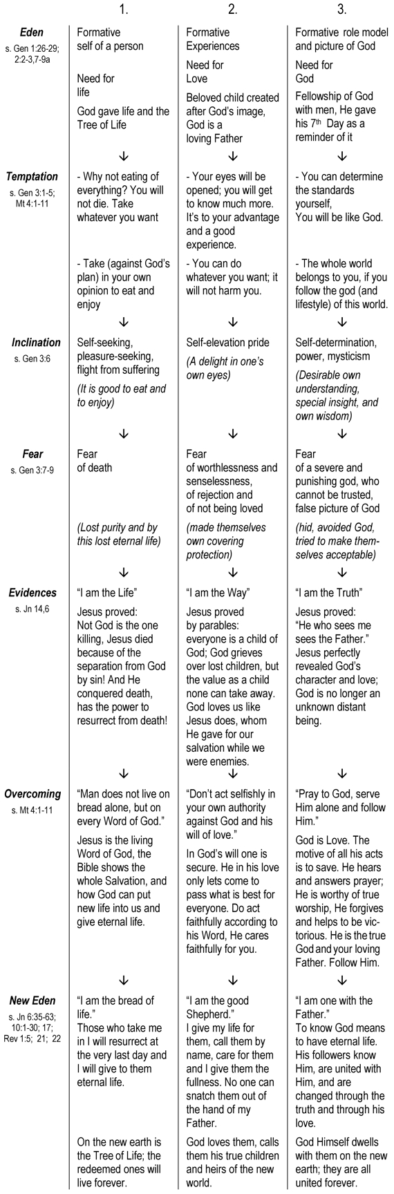 By these acts already in Eden everything was ready for the future and the foundations were given. The temptations, Satan then used to sow distrust, were essentially the same at the tree with the first men and later in the wilderness with Jesus ... and they are still the same today.