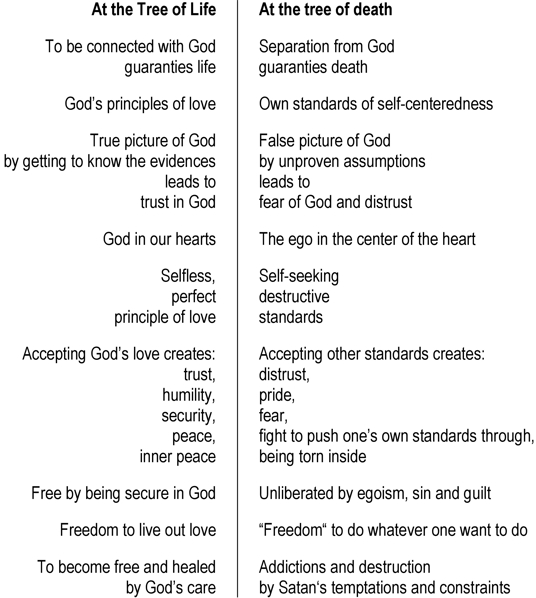 We have the choice between the Tree of Life, which is God and his perfect love, to which we already have access today; or the tree with the principles of the adversary.